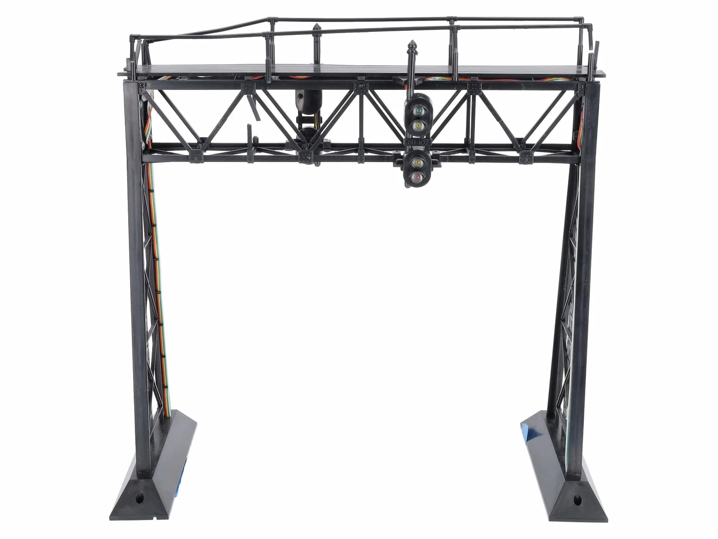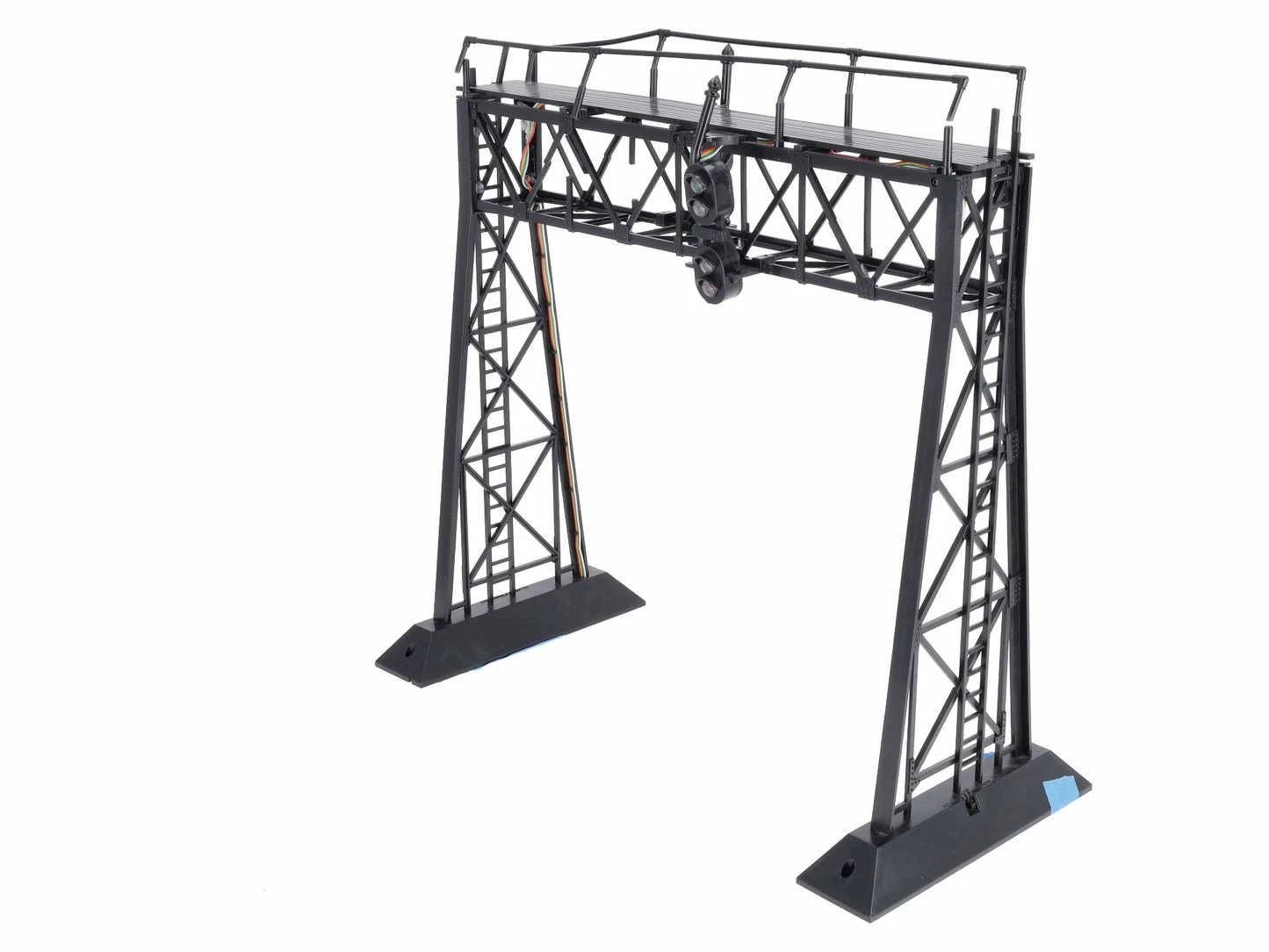 G Gauge Double Track Signal Bridge Kit with Lights For 2 Tracks. It features durable weatherproof paint and can be used either indoors or outdoors. 14 x 7 x 15.