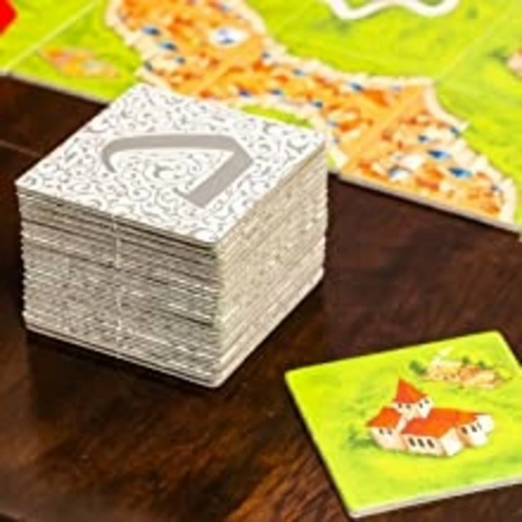 Includes: 72 land tiles, 12 river tiles, 40 meeples, 5 abbots, 1 scoreboard, 1 rulebook