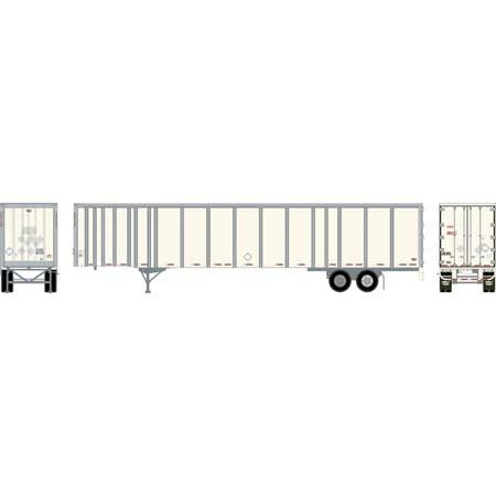 The Wabash 53’ Plate trailer was manufactured in the 1990’s. The trailer is distinguished by the unique, uneven spacing of the exterior ribs. It was a common trailer for piggyback service in the 1990s and 2000s. The Plate trailer was subsequently replaced by the DuraPlate trailer in Wabash’s line, but these veterans can still be found out on the road (and rails) today.