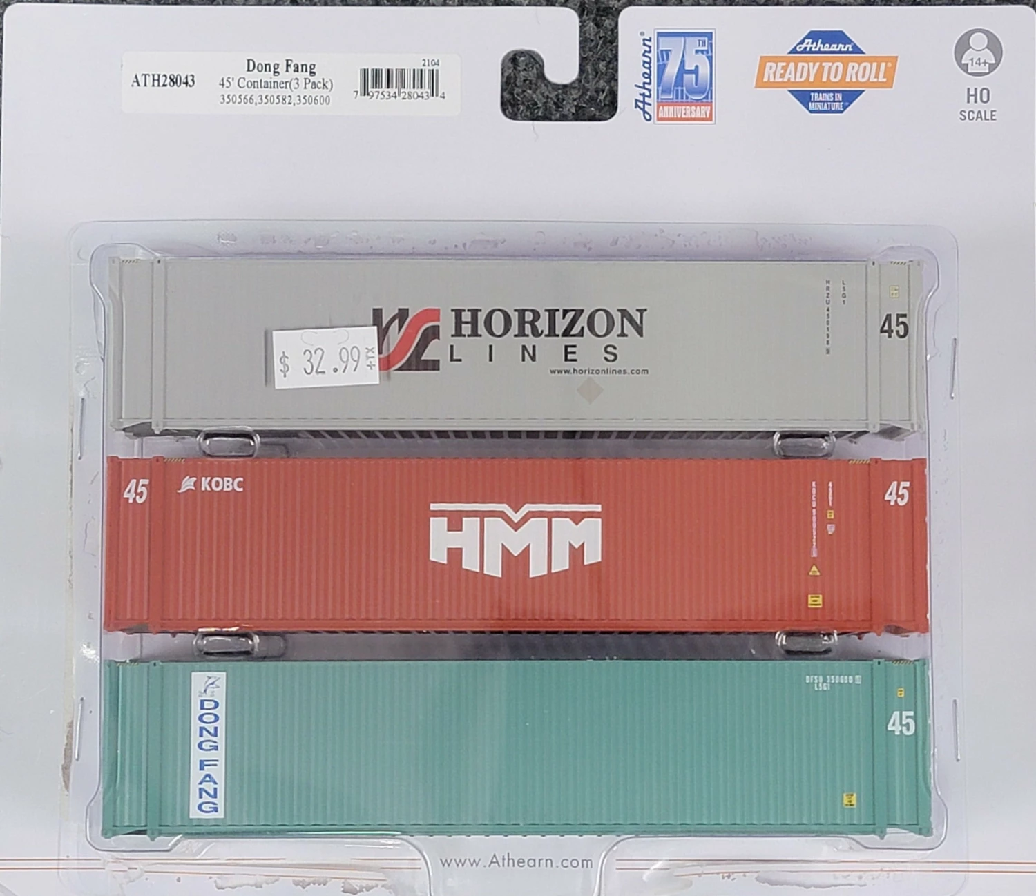Athearn HO Scale 45′ Container Dong Fang HMM and Horizon Lines Mixed