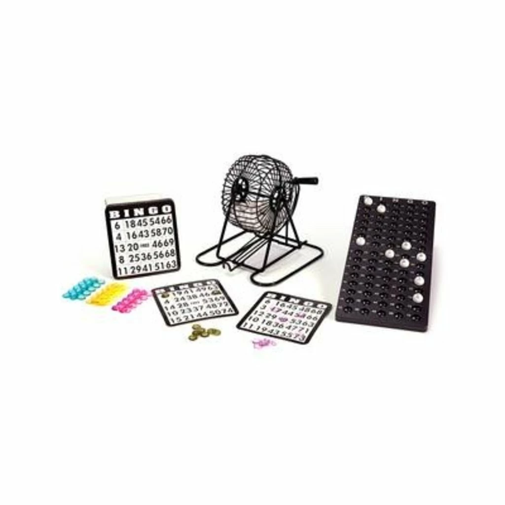 Bring home that well-known game that gets everyone excited and has them hang on the edge of their seat until the very end- BINGO! This Bingo Deluxe Parlor Set has everything you need to get the game going with Bingo cards, numbered balls, card markers, a master board, and a metal cage. From family nights to social get-togethers, who doesn’t love a good ol’ game of BINGO?!