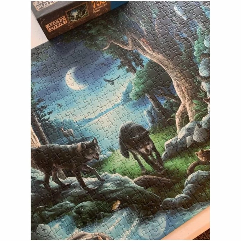Do you have what it takes to ESCAPE the Curse of the Wolves? This new Escape jigsaw puzzle brings the mysterious challenge of an escape room into the comfort of your own home. What makes this puzzle unique is the innovative cutting process that allows pieces throughout the puzzle to fit together in multiple places, thus allowing the puzzlers to form items or objects that will assist in their escape. Similar to physical Escape Rooms, the Escape Puzzle is perfect for social gatherings where you can work together with friends or family to “puzzle your way out”.