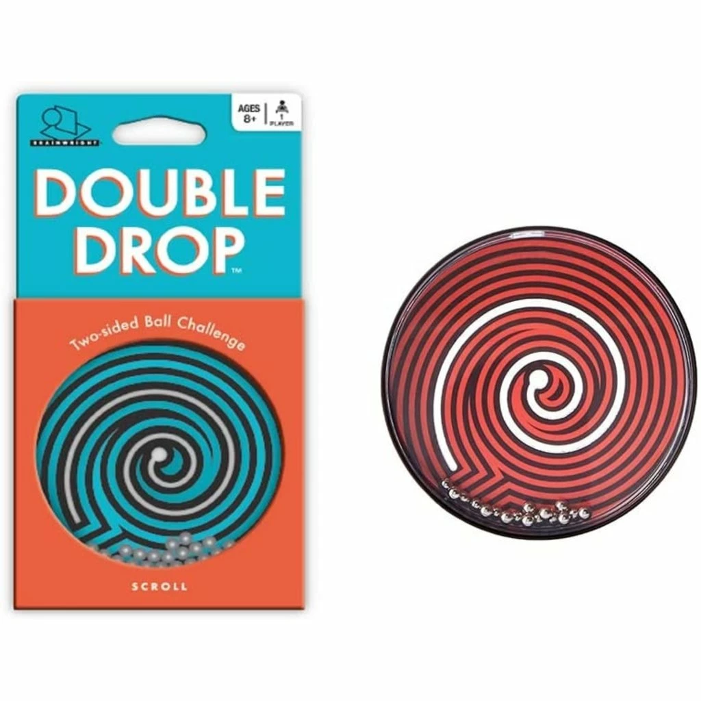 Pocket-sized, portable fun! Tilt and swirl to sink the metal balls into the center hole. A maze on each side means double the challenge, double the fun! There are 3 different double drop games, each sold separately.
