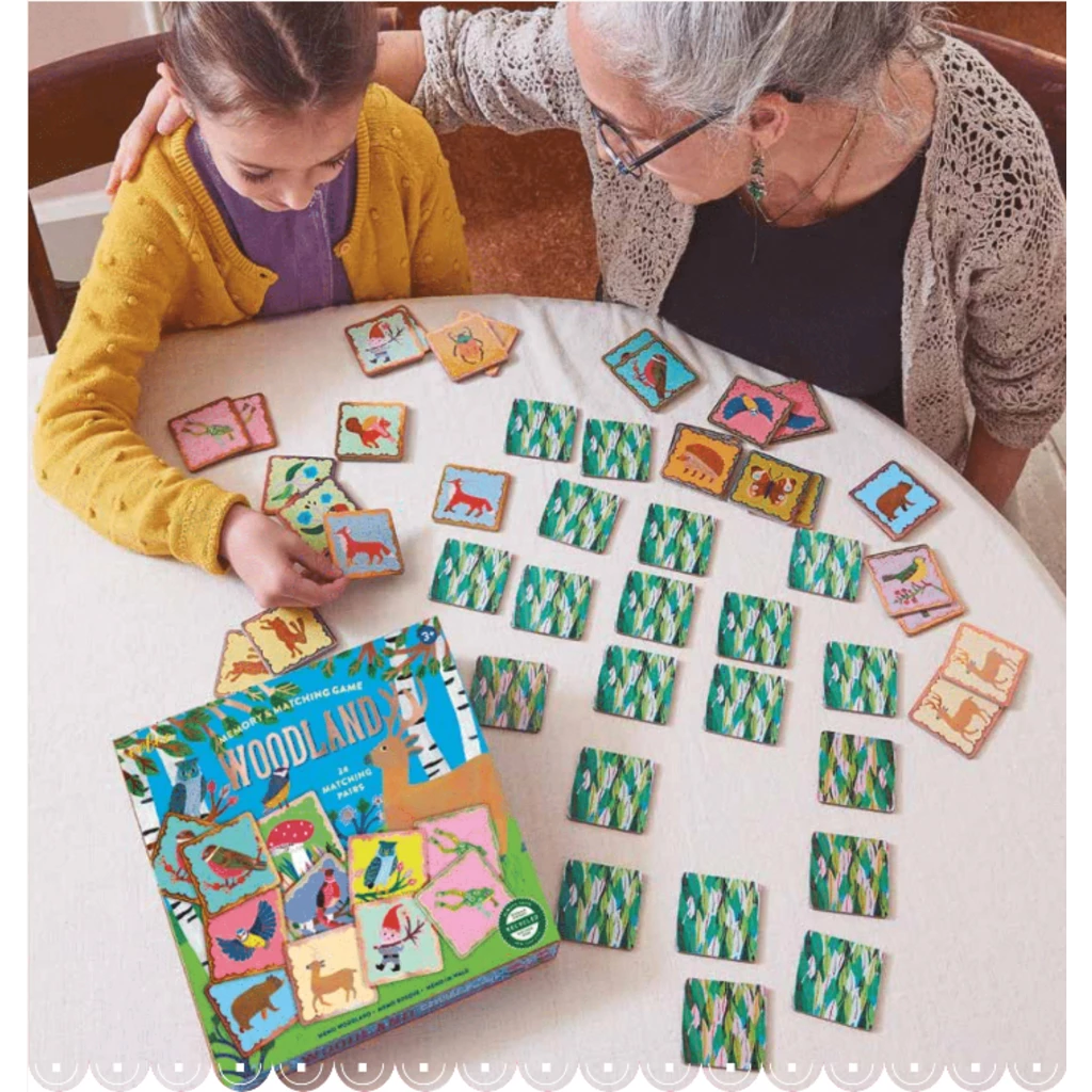 - Woodland Memory & Matching Game from eeBoo has 24 pairs to match.
