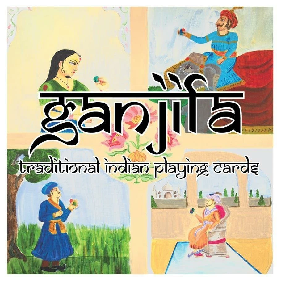 Ganjifa cards have been around for centuries in India and Persia, but they are relatively new to the West. Ganjifa cards are round playing cards, numbered 1-10 with two face cards: the Raja (King) and the Vizier (Minister). There are 8 suits in the Mughal version which makes 96 cards in all. Ganjifa cards are traditionally hand painted and the rules for games are passed down from one generation to the next. This second printing of Tab Creation’s Mughal Ganjifa deck includes high quality cards with the rules for seven games total, including four historical and three unique games.