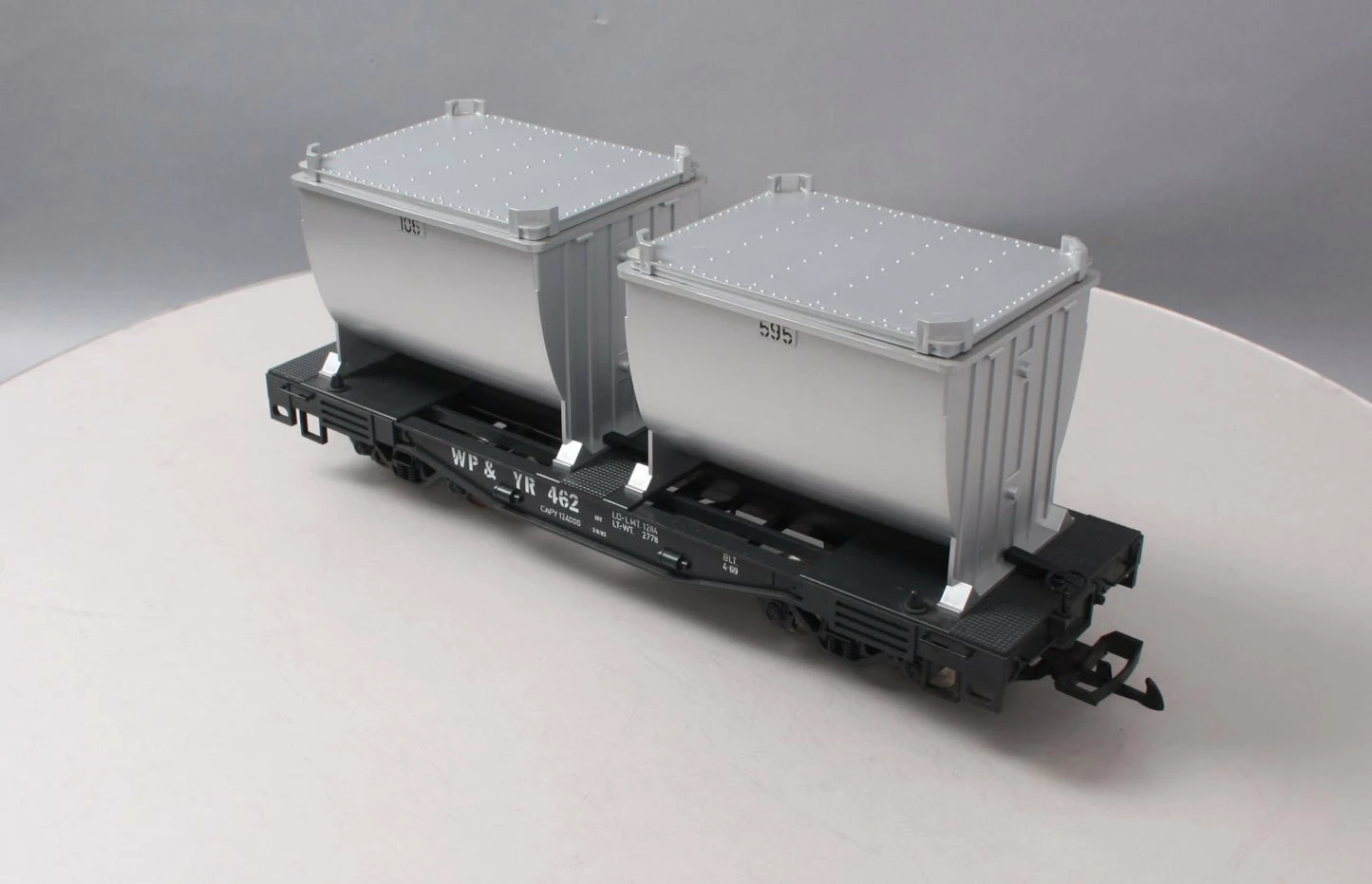 G Scale Flatcar with Ore Containers White Pass and Yukon WP&Y 462