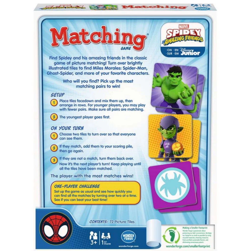 Find Spidey and his Amazing Friends in the classic game of picture matching! Turn over brightly illustrated tiles to find Miles Morales, Spider-Man, Ghost-Spider and more of your favorite characters.