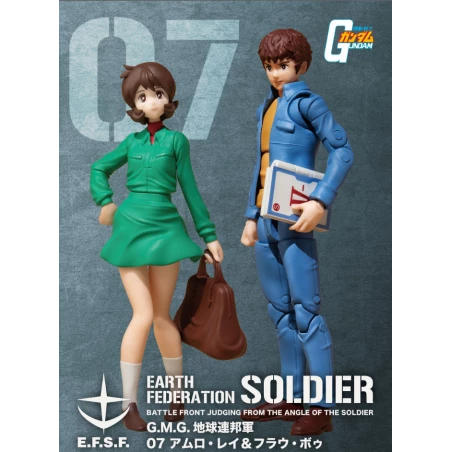 Set contents: Complete painted movable figure (1), complete painted non-movable figure (1), replacement head for Amuro Ray (2), replacement hand parts for Amuro Ray (4), accessory parts for Amuro Ray (3), left arm parts for Fraw Bow (1), halo (1)