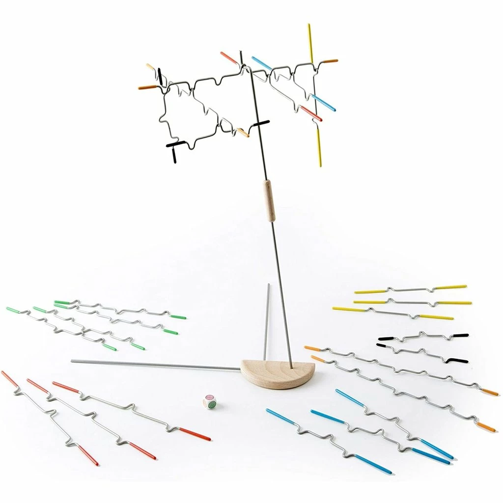 A family game of tricky hangs and steady hands! Try this hanging balance game and you’ll be hooked! Suspend comes with 24 notched, rubber-tipped wire pieces to hang from a tabletop stand. Sound easy? Try adding another piece! Each time a bar is added, the balance shifts, the difficulty changes and the incredible midair sculpture transforms. As you play along gorgeous abstract art is formed! Can you add all your game pieces without making it fall? This tricky game for 1-4 players is a test of steady nerves and steady hands.