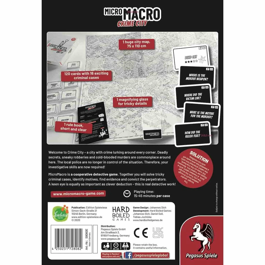 Crimes have taken place all over the city, and you want to figure out exactly what’s happened, so you’ll need to look closely at the giant city map (75 x 110 cm / 29.5 x 43 inches) to find all the hidden information and trace the trails of those who had it in for their foes.