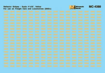 Reflector Stripes – Scale 4 x 18 , YELLOW For use on Freight Cars and Locomotives (2005+) – Waterslide Decal – N Scale.