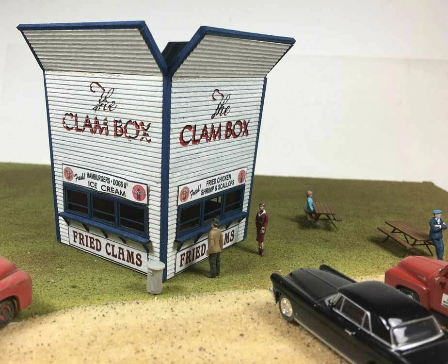 The Clam Box from Motrak Models brings a unique seafood restaurant to N Scale. The prototype is located on Route 133 in Ipswich, MA, and has been serving some of the best seafood in New England since 1935.