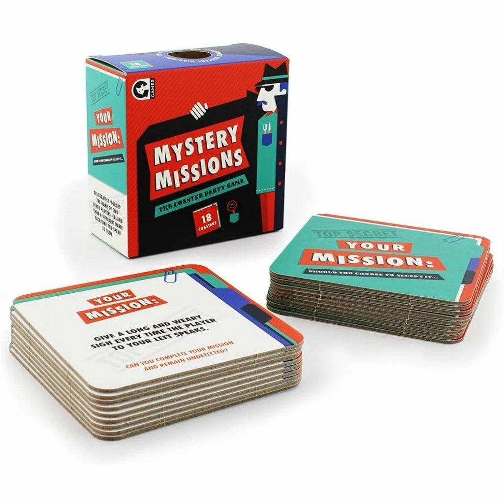 The top-secret coaster challenges in Mystery Missions: The Coaster Party Game by Ginger Fox® will bring any party to life. All you have to do is complete your hilarious mystery mission and remain undetected! Can you complete your mission without getting caught! Perfect family game for any holiday or party!