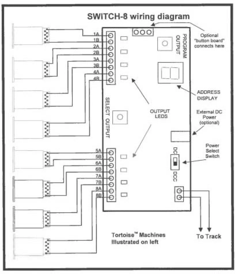 - Simple hook up, 2 wires to the track, 2 wires to each switch machine