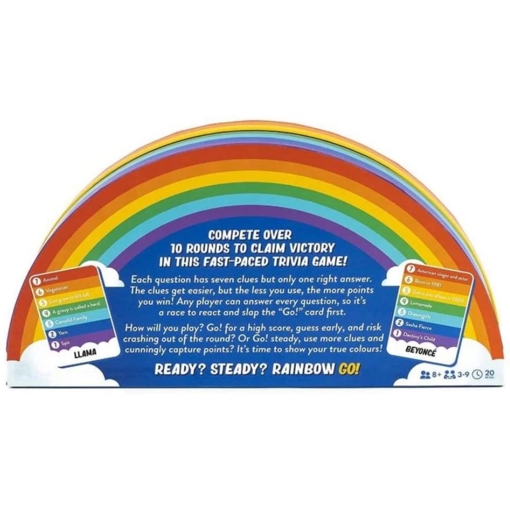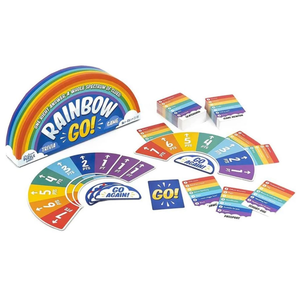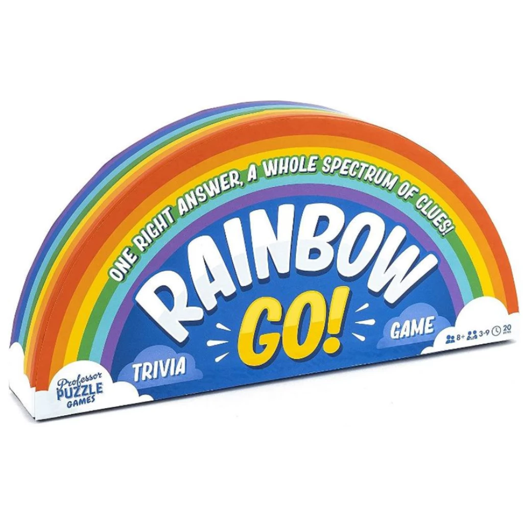 - Rainbow GO! from Professor Puzzle is a fast-paced trivia game for family games night.