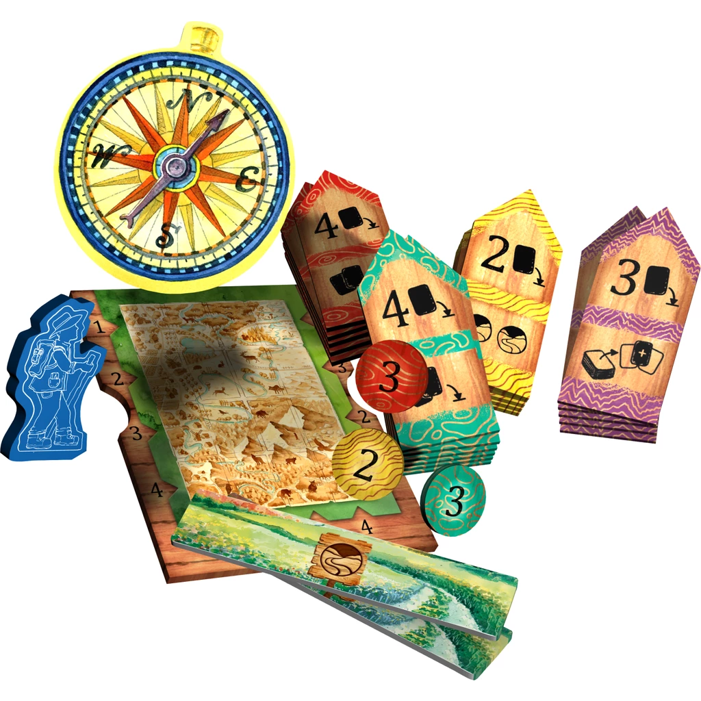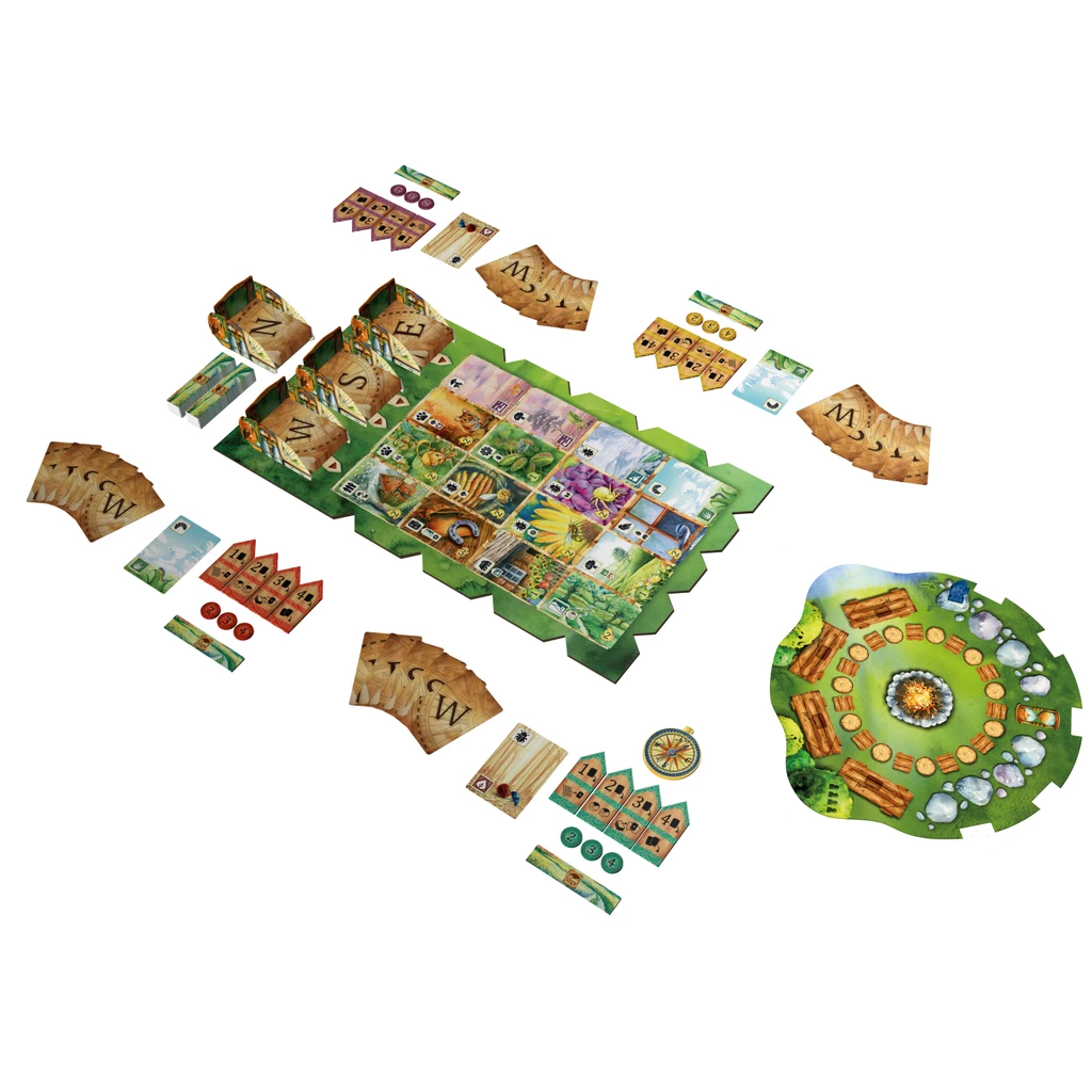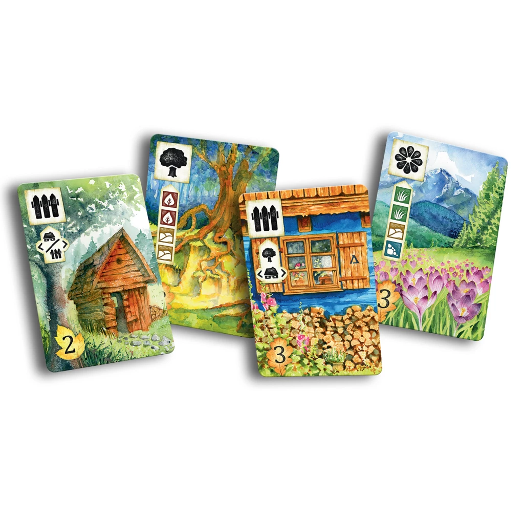 Meadow is a board game in which players take the role of wanderers watching nature. Equipped with a map, they stroll through the picturesque surroundings, looking for inspiration and capturing breathtaking views. Players are driven by passion and curiosity, but also by competition for the title of the keenest nature observer! It will be awarded to whoever scores the most points from the observed species of animals and plants, landscapes and souvenirs collected from the hike. Competition continues by the fire, where players compete in achieving the goals of their expeditions.
