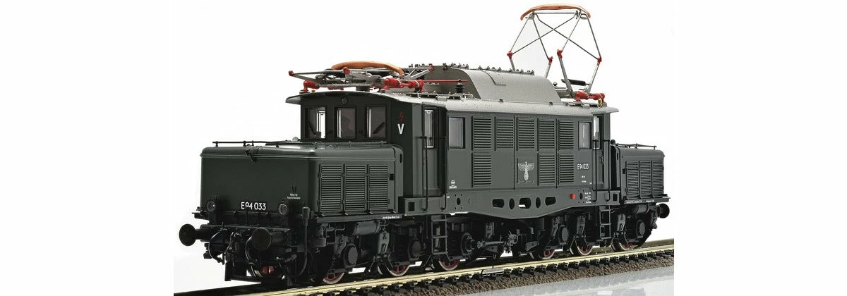 Electric locomotive E94 of the Deutsche Reichsbahn in operation condition of the 1940s. Visually and technically revised model with grab irons and handrails, many separately attached plug-in components, LED lighting, PluX22 interface, engine with mass flywheel, wheel set with low flanges. NEM 362 coupler pocket. Model with digitally switchable sound functions.