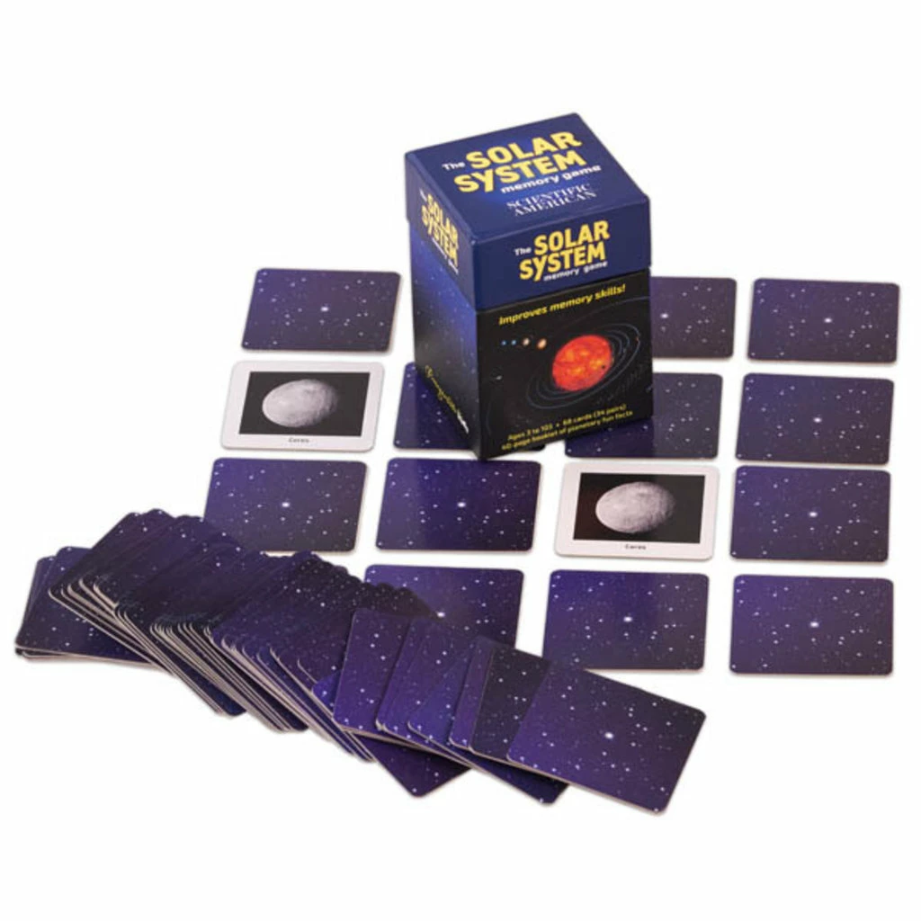 From the Moon, our closest neighbor, to the smallest planets (called “plutoids”) in the outer reaches of the solar system, the 34 images in this Solar System Memory Game feature celestial bodies both familiar and far-out! Instructions for play are printed on the bottom of the sturdy, reusable box, which neatly stores cards between games and includes a 40-page information booklet with details about the featured artwork. Kids of all ages can enjoy playing the game and learning about astronomy from the accompanying booklet. This card game sports out of this world gorgeous graphics!