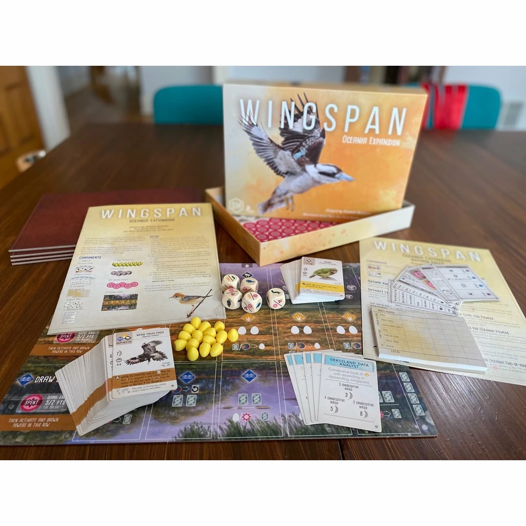 - Add the second expansion, Oceania Expansion, to the original Wingspan game. Featuring the colorful and awe-inspiring birds of Oceania, the Oceania bird cards are designed to be shuffled into the bird cards from the base game, with or without other expansions. (Wingspan is available separately.)