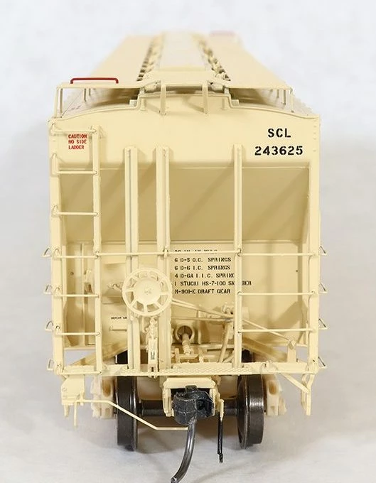 - Truck: Tangent 100-ton Barber S-2 trucks with prototype-specific rotating bearing caps and separate brake beam part