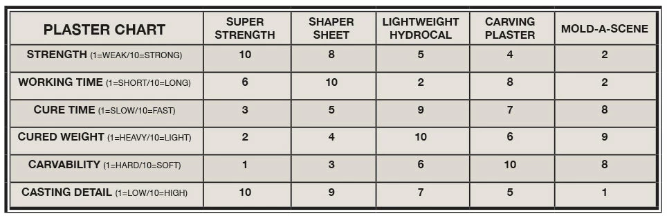 Lightweight Hydrocal Plaster is specially formulated for terrain model builders. At half the weight of Hydrocal Plaster, it goes twice as far.
