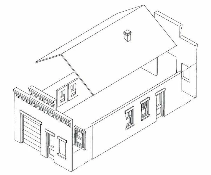 Painting is optional with #200 Series Kits. The walls are tan in color, doors and windows are rust. The building pieces are made of injection molded styrene plastic. See photos for footprint.
