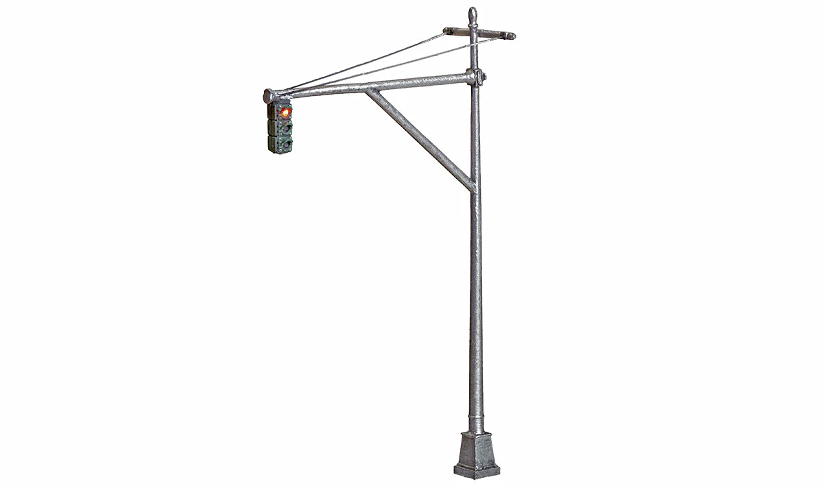 The Mast Arm Traffic Lights hang over part of the intersection and are used for intersections located on suburban or small-town roads. They are ready to place right out of the package. They’re hand-painted and authentically weathered. The Traffic Lights are pre-wired and made for use with the Just Plug® Lighting System.